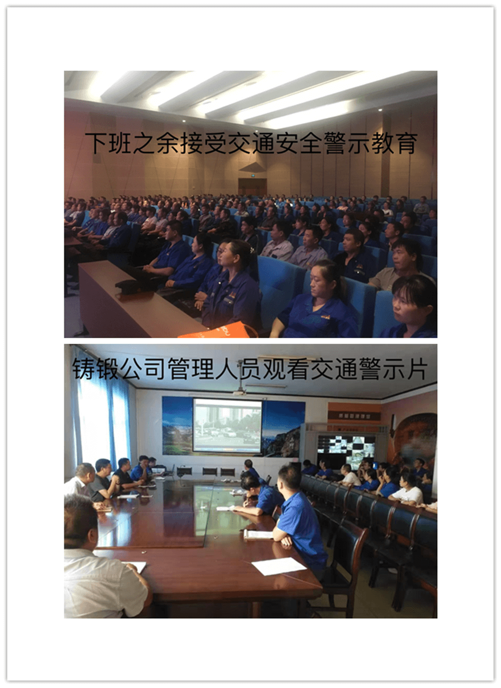 開(kāi)展警示片宣傳教育活動(dòng)。集團(tuán)公司按單位分三次組織1000余名員工觀(guān)看交通事故警示教育片,集團(tuán)公司子公司林鋼、鑄鍛也積極按照方案要求組織收看教育片,同時(shí)各單位還利用本部門(mén)的微信工作群進(jìn)行轉(zhuǎn)發(fā)收看,達(dá)到警示教育全面覆蓋之目的。