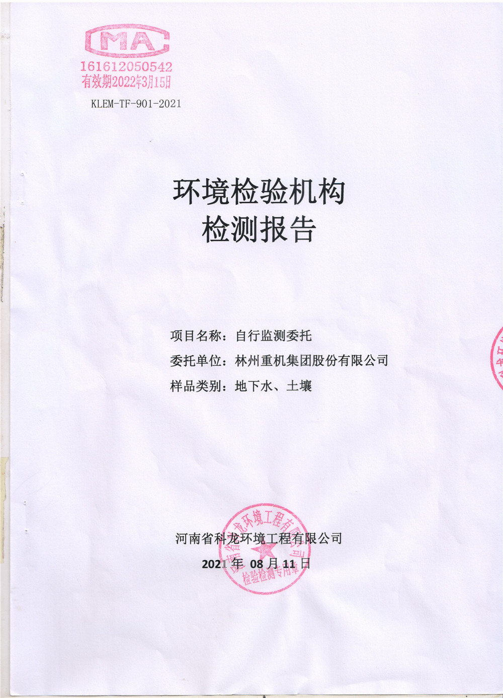 林州重機(jī)股份有限公司土壤檢測(cè)報(bào)告公示